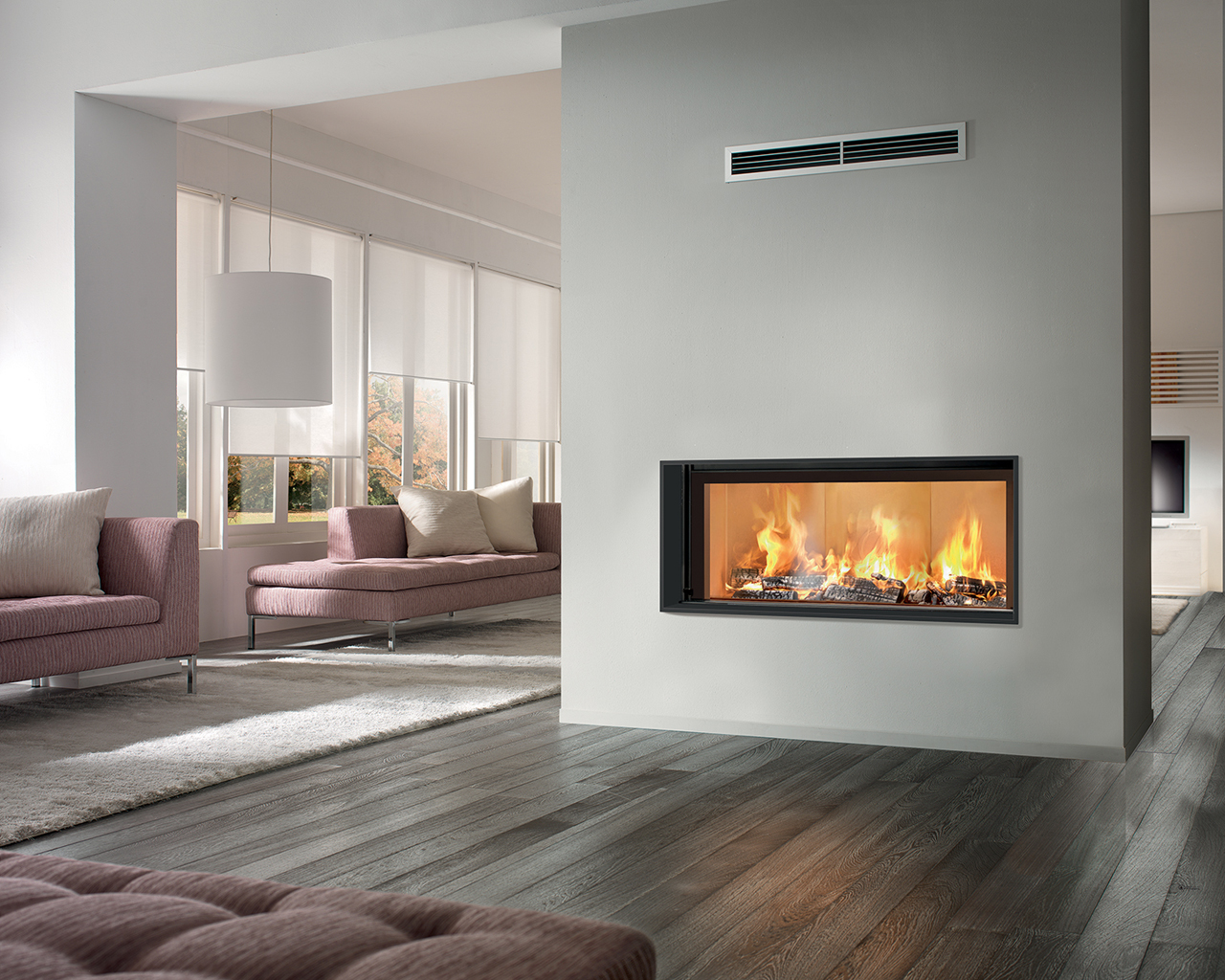 Ce foyer extra-large au design minimaliste accueille de grandes bûches et renforce la fascination exercée par les flammes. Relevez la porte escamotable pour ajouter facilement une bûche. Grâce à la postcombustion et aux pierres réfractaires qui équipent le foyer vous bénéficiez de hautes performances énergétiques. Vous pouvez distribuer l’air chaud dans toute la maison par convection naturelle ou forcée en installant l’un des kits optionnels.