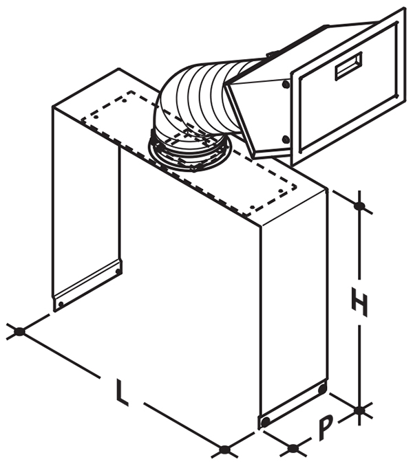 * Kit aération – sortie air L74 x P1 16,5 x H13 cm – entrée air L74 x P2 6,5 x H13 cm – C02237